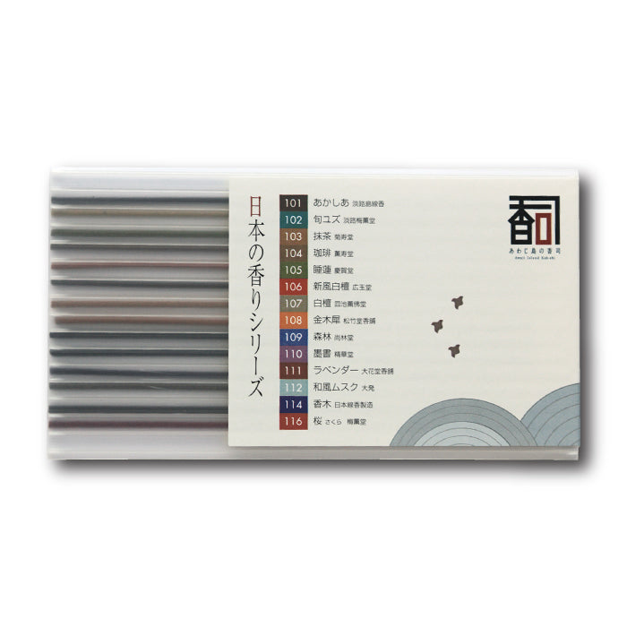 「日本の香り」シリーズは香司たちが、淡路島のお線香という品質にこだわりと心意気を持って練り上げた香りの自信作です。