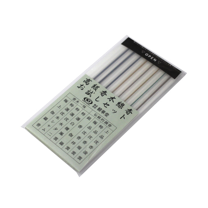 伝統的調香4種(凌雲、瑞雲、祥雲、銘香伽羅)と香木一味4種(鳳雲、沈水タニ、シャム、極上伽羅香)各1本入。